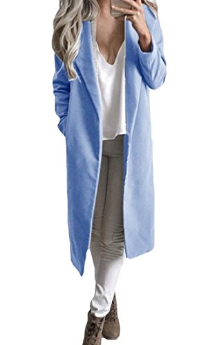 -. Title : Nicellyer Women Warm Long Sleeve Lapel Pockets Solid Trench Coat Overcoat Blue XL