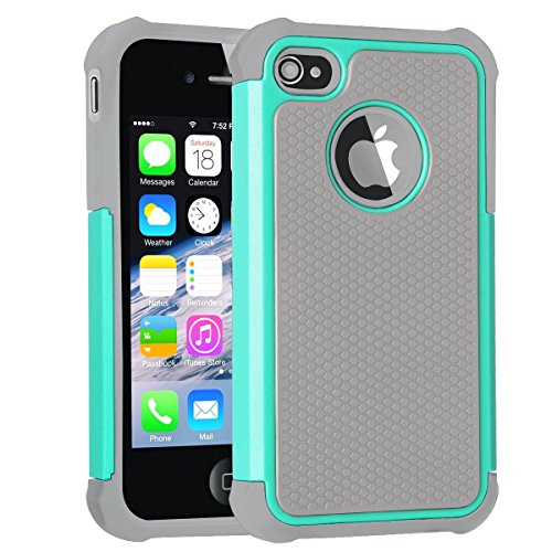 iPhone 4S Case, iPhone 4 Case, Hybrid Dual Layer Protective Hard Plastic and Soft Silicone with Shockproof Case Cover for iPhone 4S 4 4G Grey