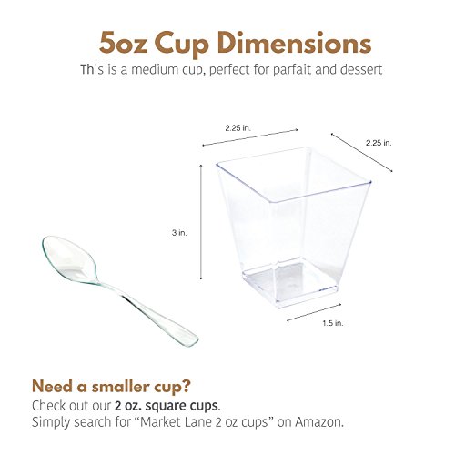 Professional Grade 5 oz Clear Plastic Dessert Cups (50-Pack) with Mini Spoons by Market Lane
