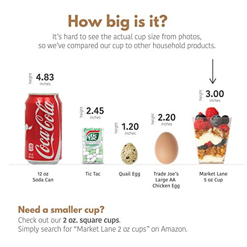 - JUST THE PERFECT SIZE - These 5 oz plastic dessert cups will hold 1 person's serving size (see photo for dimensions). Our customers love these for yoghurt parfait, chocolate mousse, layered jello, and so on. Not to mention, candy-filled cups are usually a big hit with the kids!