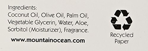 Mountain Ocean Skin Trip Coconut Soap. Description: This vegetable based Moisturizing Soap is made in small batches with the highest quality ingredients. The creamy lather and rich coconut fragrance lasts throughout the bar. Disclaimer: These statements have not been evaluated by the FDA. These products are not intended to diagnose, treat, cure, or prevent any disease.Feature