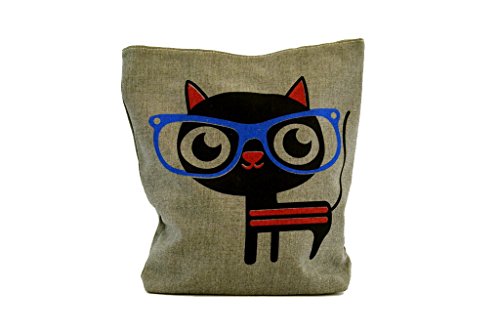 LSW Cat with Glasses Canvas Shoulder Tote Bag