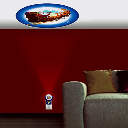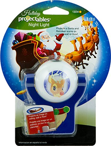 Bring your night to life with the Projectables holiday LED night light, which provides a soothing white guide light while projecting a three-foot scene featuring santa and his reindeer on the wall, ceiling, or floor. Light-sensing technology means it automatically turns on at dusk and off at dawn. Energy efficient, long-life leds provide the glowing image with no bulbs to replace! perfect for kids of all ages. The night light is for indoor use only. This product is backed by a 90-day limited warranty.Feature