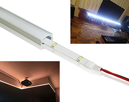 VERSATILE&EASY INSTALLATION: 12.5mm inner width accepts PCB width up to 12mm LED Strips, such as 3528, 5050 & 5630 LED strips, Simply stick the LED strip light's adhesive backing inside the aluminum channel, snap on the diffuser cover.
