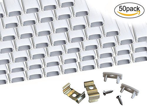 PACKING INCLUDED :This50pack LED U-shape aluminum channels/extrusions/profiles come with 50pcs milky plastic cover, 100pcs end caps,100pcs mounting clips, 100 pcs of screws. Each segment is 1M (3.3ft), total length is 50 meter. The channels can be cut down to any length. Please search B06WW2FFR6 If need extra mounting clips and end caps.