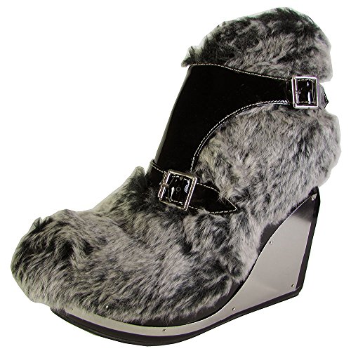 Brand: Jeffrey Campbell. Department: Women. Style: Vostok. Made in China. Materials: Faux Fur Upper, Leather Lining, Man Made Sole. Monk Strap with Two Adjustable Buckles On Front. Mirror Reflecting Plate On One Side Of Heel. Closed Pointed Toe. Shaft Height Measures Approximately 5.5". Shaft Opening Measures Approximately 10" Around. Heel Height Measures Approximately 4.75". Platform Height Measures Approximately 1.25". NOTE: All Measurements Taken on Size US 8, Measurements May Vary By Size. 0 |
