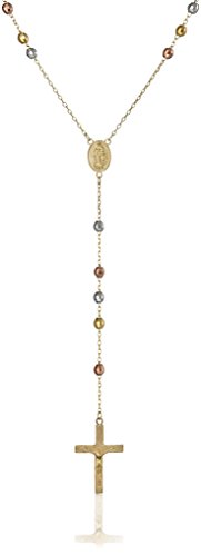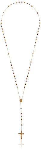 Sterling Silver with Yellow and Pink Gold Plating Rosary Necklace, 24"