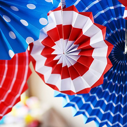 Round Wheel Hanging Paper Fans for Fiesta Events Birthday Party Wedding Decoration, Red/White/Blue, Pack of 6