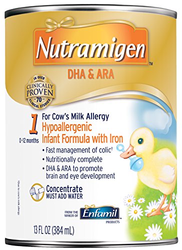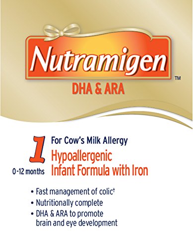 Nutramigen with Enflora LGG* is clinically proven to manage colic due to cow’s milk allergy fast, often within 48 hours†. The powdered form includes the probiotic LGG and has been proven to help build oral tolerance to cow’s milk. Nutramigen with Enflora LGG provides complete nutrition for your baby’s first year and is proven in over 70 studies. Its extensively broken-down proteins are hypoallergenic and easy to digest.