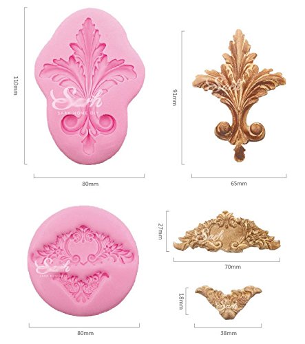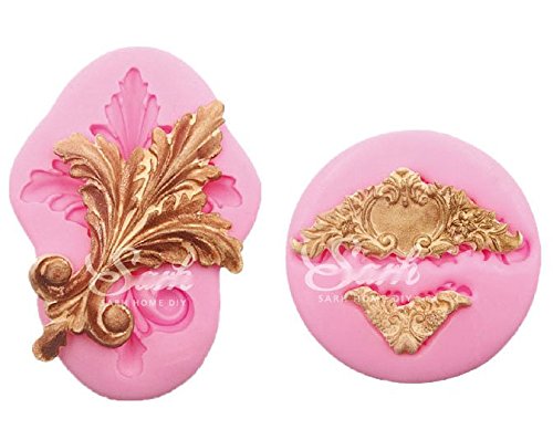 Anyana Vintage European Filigree Baroque Scroll wedding mould cake Fondant gum paste mold for Sugar paste gumpaste designer cupcake decorating topper decoration sugarcraft decor set of 2