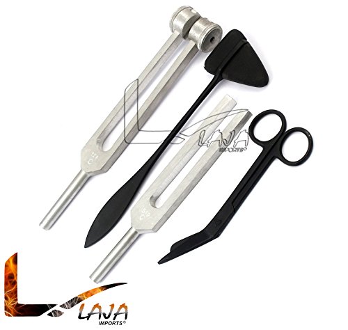 Product Description LAJA IMPORTS TACTICAL BLACK - SET OF 4 PCS REFLEX TAYLOR HAMMER MALLET TUNING FORK C 128 512 HZ BANDAGE SCISSORS 5.5" 0