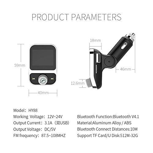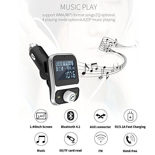 Baile Wireless Car Bluetooth FM Transmitter Radio Adapter Car Kit with 1.44 Inch Display and USB Car Charger for iPhone ,Android Smartphone, MP3 Players