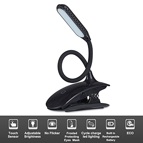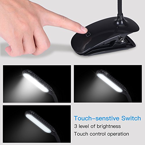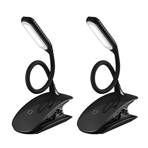 HSicily Led Clip Reading Light 360° Adjustable Travel Reading Lights USB Rechargeable 3 Levels Brightness Touch Control Clip Lamp Bedside Book Lights with Good Eye Protection Brightness, 2 Pack