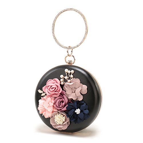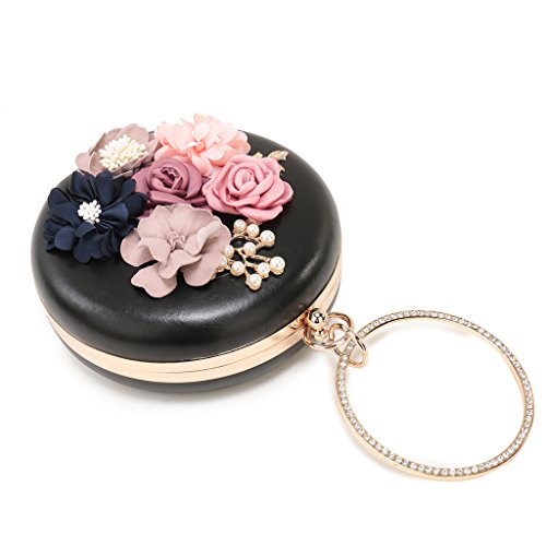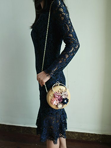 -. Feature : SIMPLE AND ELEGANT DEIGN -The evening clutch is made of vintage PU leather,decorated with colorful handmade flower and peal,fit all style of dress. / DIMENSION: 6.88"L x 1.96"W x 3.9"H,weight is 0.83 pounds,chains length:45.6". / OFFER ENOUGH STORAGE-The main compartment large enough to contains small bottle of perfume,lipsticks,mirror,comb,jewelry,etc. / CLUTCH THE EVENING CLUTCH FOR YOUR PREFERENCE-With 45.6 inch chain,you can clutch it by hand ,shoulder or corssbody. / PERFECT FOR-Wedding,prom,cocktail party,night out,prom,convention,banquet.The evening clutch is best gift for yourself,girlfriend,wife,daughter and friends