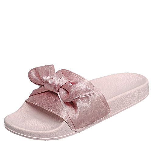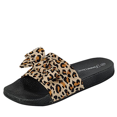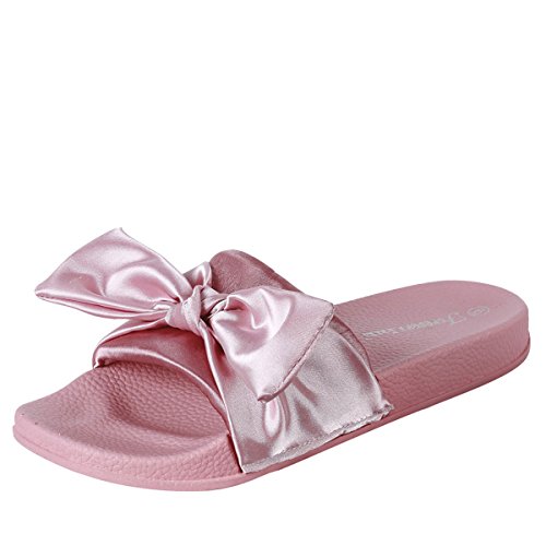 Binding : Apparel Product Description Introducing a slide you won’t be able to take your eyes off! Team them with relaxed denim-cami-combo, and watch your look become cooler in a hot second before your eyes! This slide sandal feature an open toe silhouette, wide band with knotted bow accents, and a comfy molded foot-bed. 0