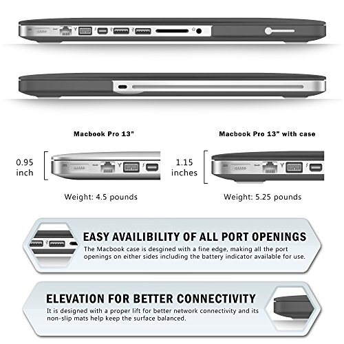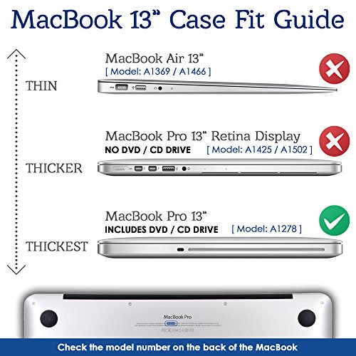 -. Feature : LIGHTWEIGHT RUBBER COATED SNAP-ON PROTECTIVE HARD SHELL COVER fits Apple's MacBook Pro 13". / Custom-built to fit the New MacBook Pro 13, keeping ALL PORTS ACCESSIBLE for use and ADVANCE HEAT DISSIPATION GAPS on the bottom which gives ventilation opening for the Mac. / Ergonomically designed RUBBERIZED CASE feels soft on touch, but is STRONGLY BUILT to withstand damages from impacts, providing a protective and ELEGANT LOOK for your laptop. / To determine compatibility check the bottom of the MacBook near the folding area for your Mac model number. / US STYLE keyboard buttons on the KEYPAD SKIN, Compatible with MacBook Pro 13.3" A1278