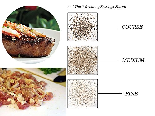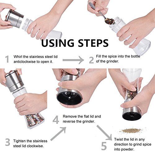 This salt grinder allows you to grind salt, pepper or other seasonings with unparalleled ease on the spot. With the salt and pepper grinder you can have the perfectly grinded fresh and tasty spices right when you need them! • SUPERIOR QUALITY: Made of the highest quality stainless steel, the quality of these rust-proof shakers will never let you down