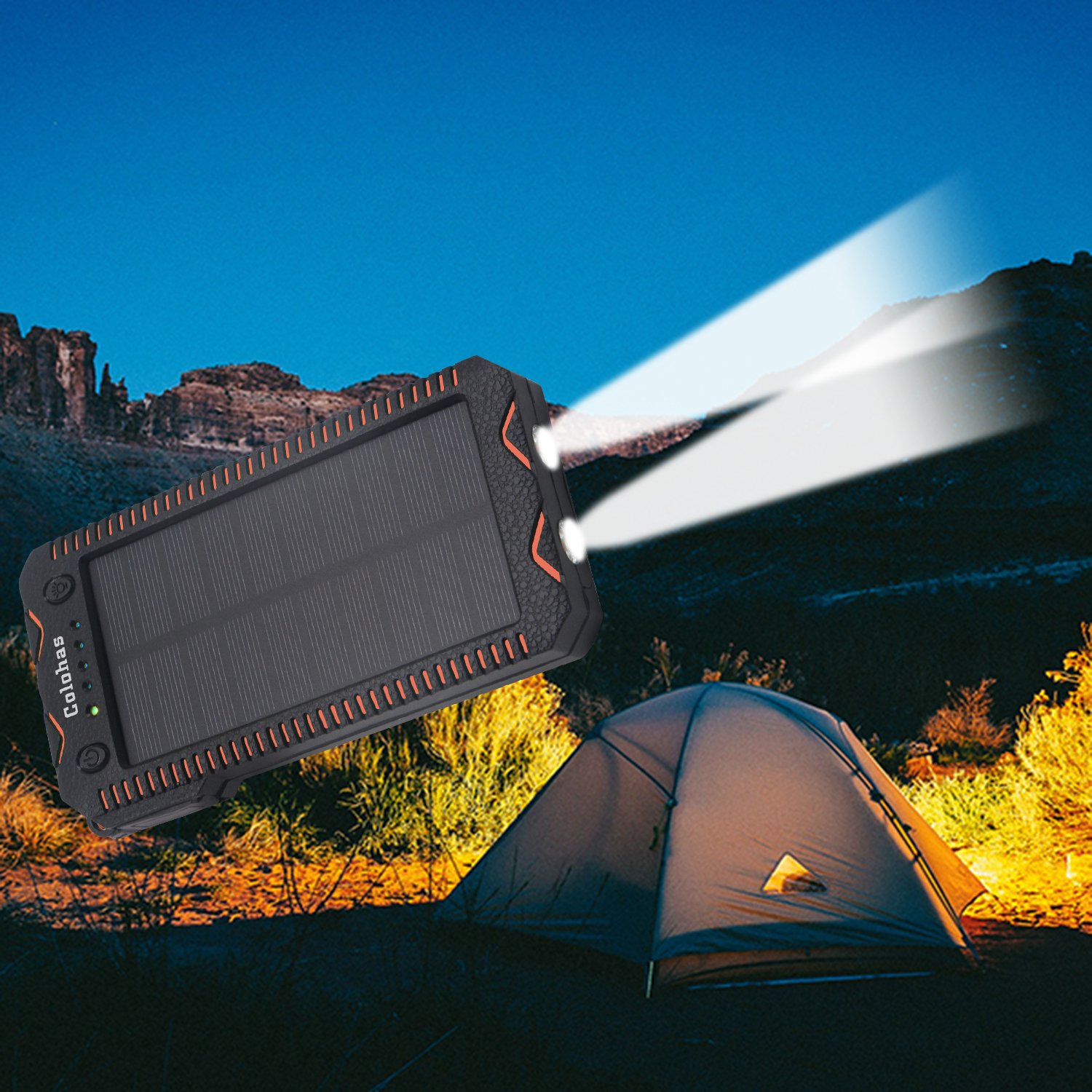 Two charging methods: ① Outdoor / Earthquake / Disaster: Solar charge ② Normal: USB charging