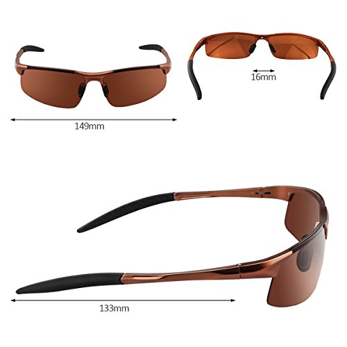 Product Description Product description: AFARER is committed to selling the latest trend products, and strive to build a world-class product, continue to broaden their horizons, open up demand of product. To inject new vitality into the sunglasses cultural, to every customer a new experience. Suitable for Sports Enthusiasts Material: Frame: Aluminum-magnesium Metal Alloy Lens: TAC Product parameters: Lens width: 71mm Lens height: 40mm Bridge width: 16mm Arm length: 133mm Frame width: 149mm Weight: 26g Colors: Black grey, Sliver grey, Grey, Coffee, Black blue Feature: 100% UV400 protection,blocks 100% harmful UVA UVB Rays. Polarized lens help restore true color. Fashion metal frames. Package Including: 1* Sport polarized sunglasses 1* Lenses cloth 1* Polarized test card 1* Hard package case 1* Polarized test card 1* Hard Protection Box AFARER Service: Lifetime breakage guarantee 90 days money back guarantee. 0