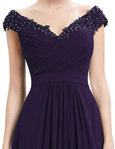 Featuring a delicately beaded V neckline and a beautiful off shoulder design this elegant dress is timeless classic. The Elegant Beaded Off Shoulder Evening Gown is fully lined with low stretch and is padded enough to make wearing a bra optional. A concealed zipper up the back secures the dress in place. On most women this dress should be about floor length.