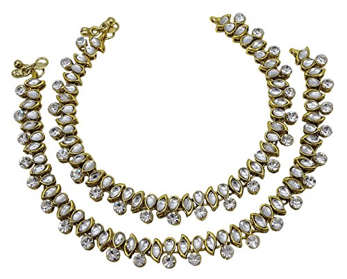 -. Binding : Jewelry -. Brand : Banithani -. Department : womens -. Feature : Add an edge to your traditional look by wearing this pair of goldtone anklets for women. / Sale For: 1 Pair Anklet; Metal: Alloy / Size: 11.2"x 0.3" Inches / SKU: SA1067A; Made in India / Discover more Beautiful Jewelry from our collection, click on the link "Banithani" above the title. -. Label : Banithani -. Manufacturer : Banithani -. Model : SA1067A -. MPN : SA1067A -. PartNumber : SA1067A -. ProductGroup : Jewelry -. ProductTypeName : FASHIONNECKLACEBRACELETANKLET -. Publisher : Banithani -. Studio : Banithani -. Title : Banithani Beautiful Cz Traditional Indian Ethnic Chain Ankle Bracelet Foot Jewelry
