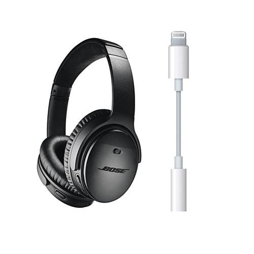 -. Title : Bose QuietComfort 35 Wireless Headphones II with Microphone, Noise Cancelling, Black - With Apple Lightning to 3.5mm Headphone Jack Adapter