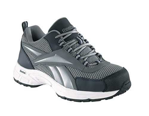Binding : Apparel Product Description Mesh and LeatherNo Exposed Metal on UpperNylon Mesh LiningRemovable EVA Cushion Insole with Sponge Rubber Heel WedgeEVA MidsoleDual Density Rubber Bottom Outsole Dual ResistorSteel Toe Rated ASTM F2413-05 I/75 C/75SD RB485 Reebok Women's Cross Trainer Safety Shoes - Grey/Navy 0