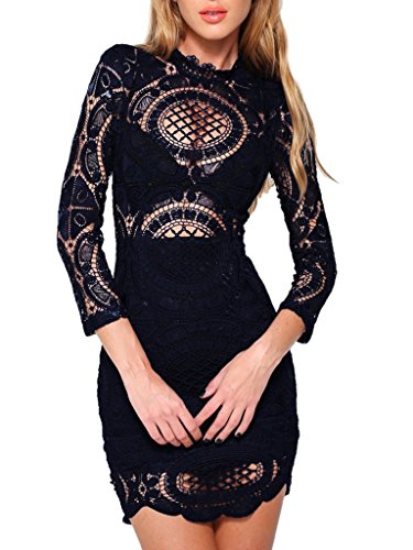 Sultry bodycon dress features sheer panels with lace