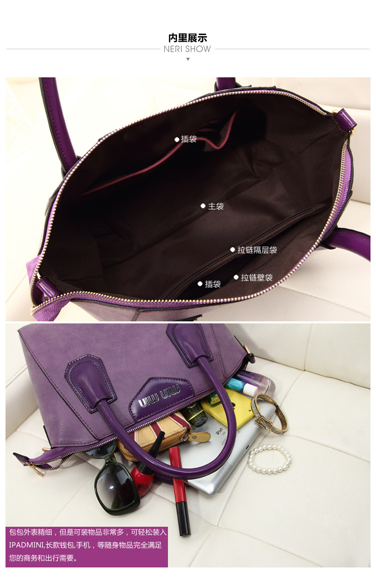 Inside: the main bag zipper wall pocket bag compartment zipper bag