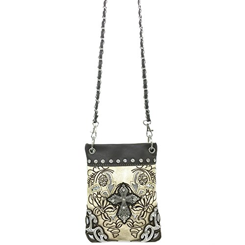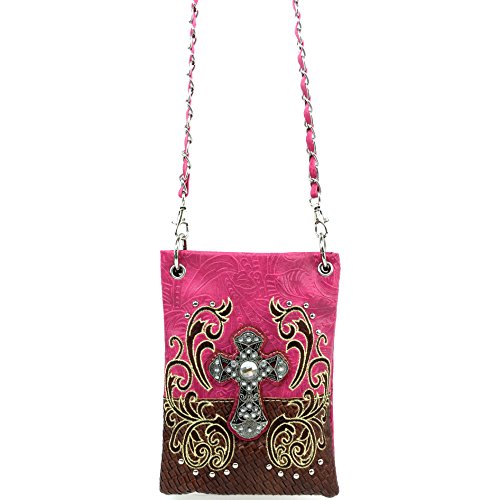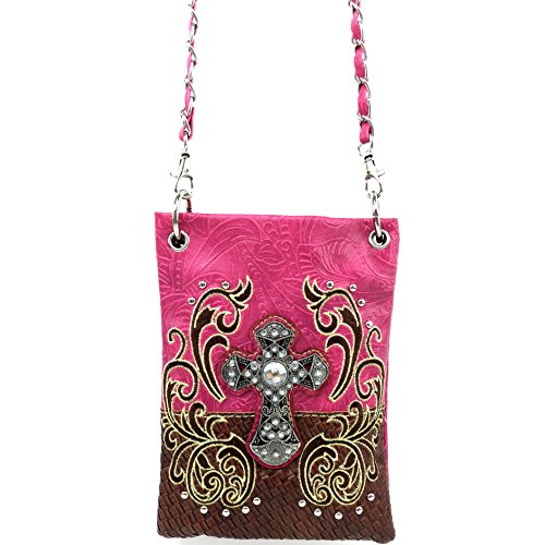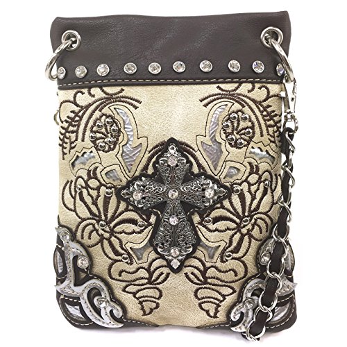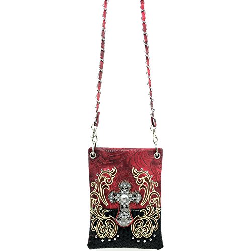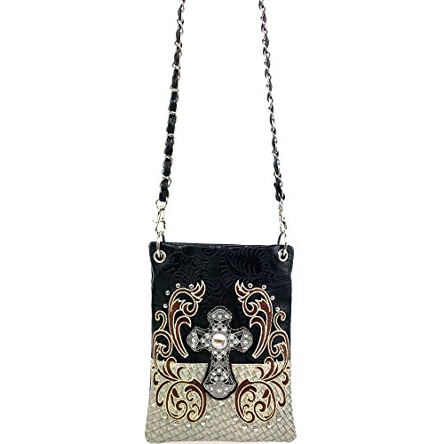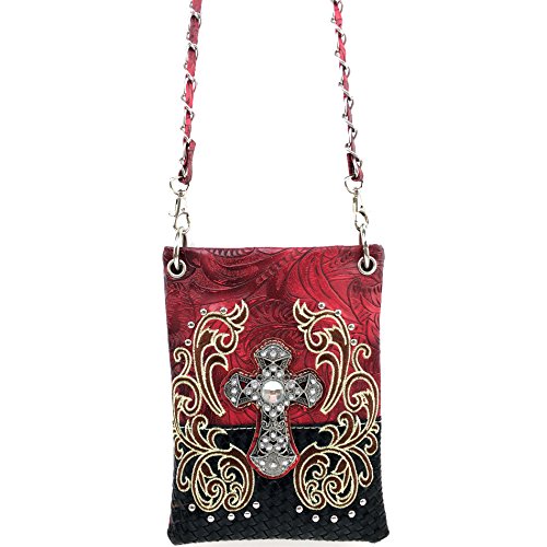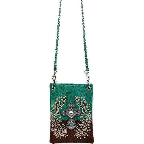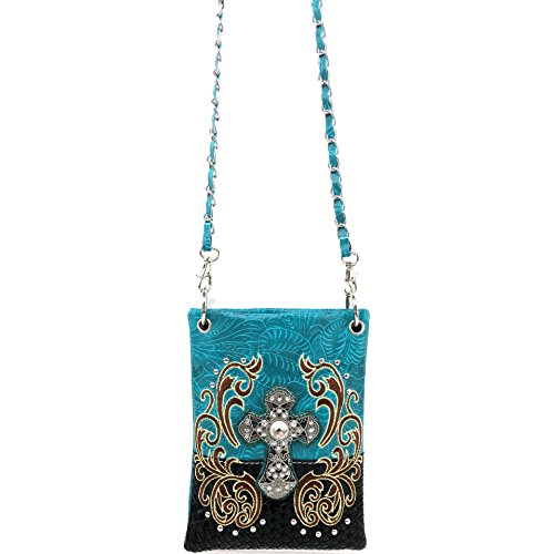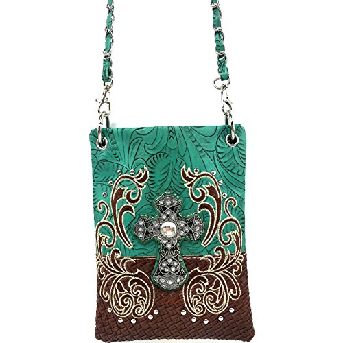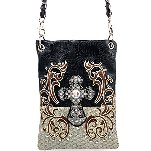 | (Justin West)/Accessories/Handbags/DIRECT FROM USA/Justin West Western Embroidered Weaved Tooled Cross CrossBody Mini Handbag Phone Messenger Purse |