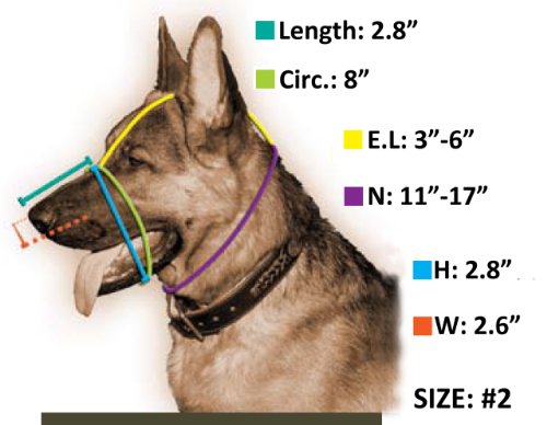 Studio : Dean Tyler, LLC Publisher : Dean Tyler, LLC Binding : Misc. Product Description Dean Tyler Dog Wire Basket Muzzle Size No. 2 - Fits Perfect Breeds Like Yorkshire Terrier, Miniature Pincher, Etc Snout Length 2.75" - Circumference 7.87" - Neck Circumference 11.8" - 14.96" - Eye Line 4.95" -Width 2.55"- Height 2.75" 0