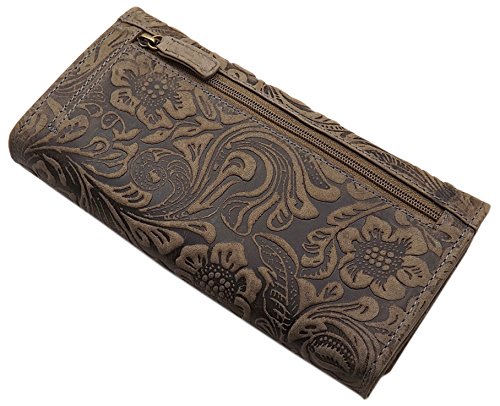 -. Title : GROßES LEDER DAMEN PORTEMONNAIE MIT WUNDERSCHÖNEM LIANEN MUSTER IN HOCH TIEF PRÄGUNG KLAPPFACH IN BRAUN ODER TAUPE