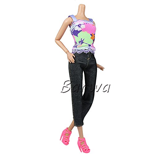 Package Included: 5 sets clothes outfit for Barbie doll ( including tops and pants, no included shoes and dolls.)