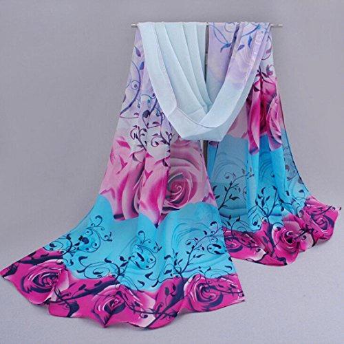 (Freshzone)/Accessories/Scarves/DIRECT FROM USA/Women Rose Pattern Chiffon Shawl Wrap Scarves160cmX50cm