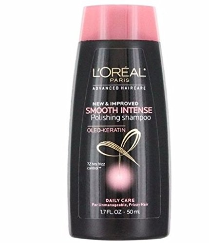 L'Oreal Paris Smooth Intense Polishing Shampoo contains oleo-keratin to help stop frizz for up to 72 hours. It instantly softens hair and reduces dryness for hair that is smooth and frizz-controlled. Lather thoroughly into wet hair and rinse for a long-lasting shine. For manageable and tangle-free hair, reach for L'OrealFeature