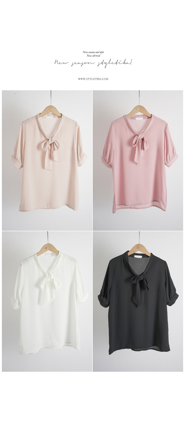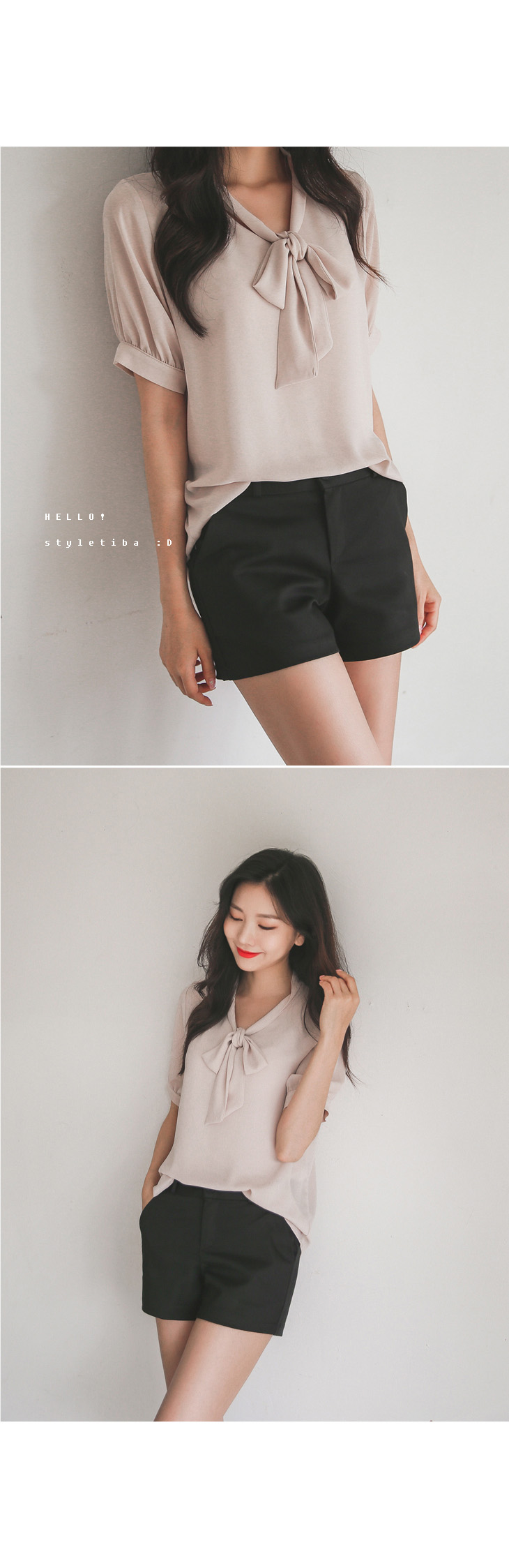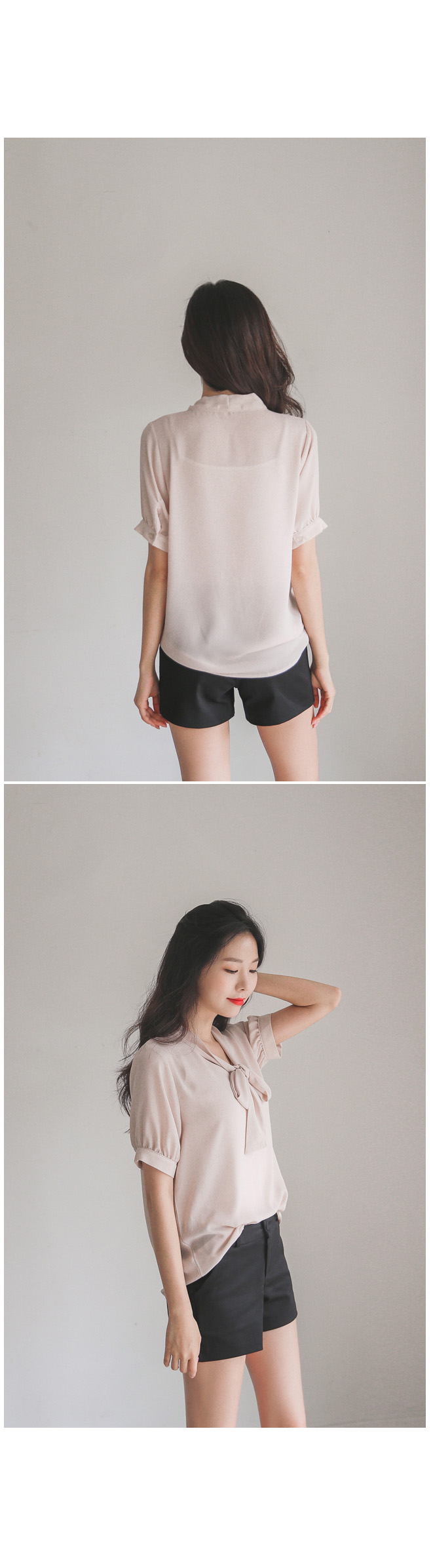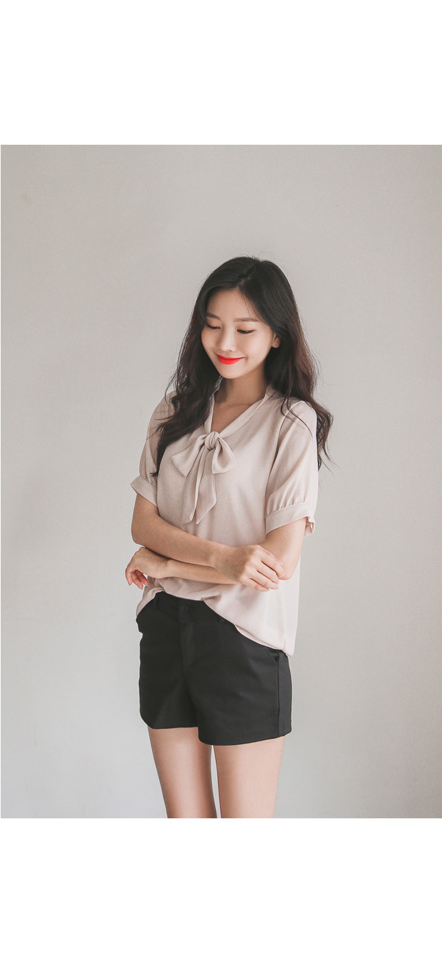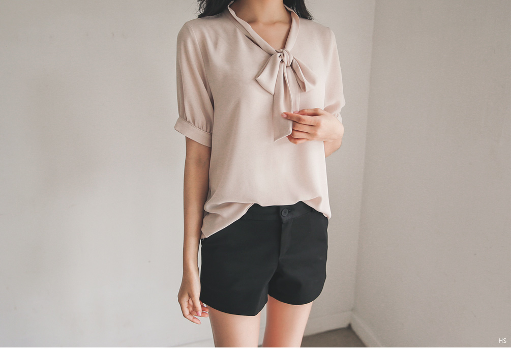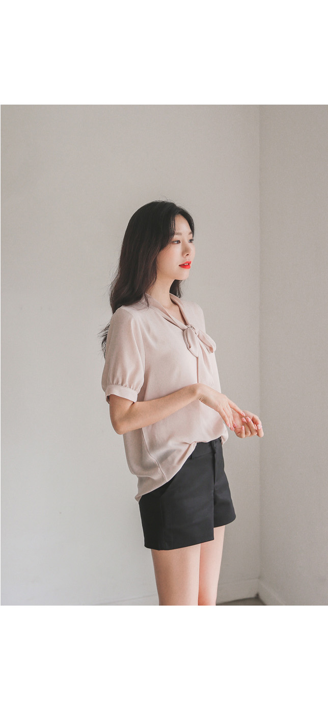 여성스러운 무드가 느껴지는 반팔타이블라우스!