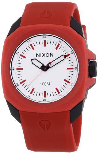 Ever see someone wearing a slick watch and get immediate watch-envy No more New from Nixon comes this exquisite Ruckus timepiece The white dial beckons for attention and the red band is sure to stand out The plastic materials used to make this watch ensure great quality and 100 meters 330 feet 10 atm water resistance plus a mineral crystal will help protect your new precious from whatever dangers may come Stop feeling the effects of watch-envy and buy this amazing timepiece today!Feature