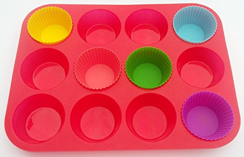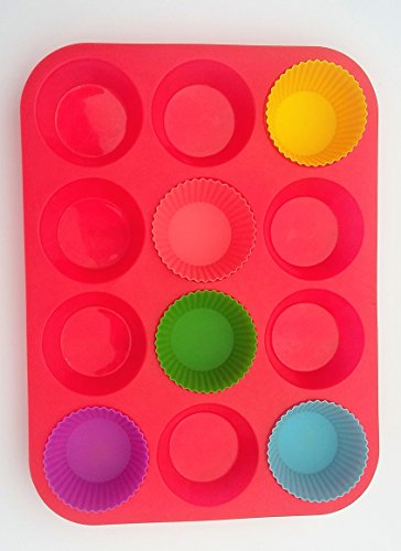 -. Title : Cupcake/Muffin Pan & Cupcake Liners of Silicone by Le Cocina. Safe & Easy to Clean includes a 12 cup red silicone cupcake/muffin pan & 24 colorful cupcake liners. Enjoy baking with silicone now!