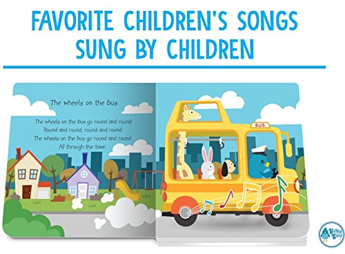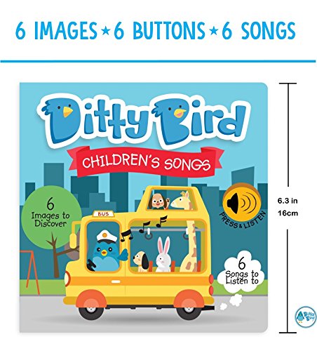 EASY, FUN, GREAT TO SING ALONG: Read, listen, and hum along as Ditty Bird sings your favorite Children's Songs. The electronic push button on every spread triggers one of the six best-selling children's song, sung by children. The beautiful and colourful images will hold your baby's attention even longer. Includes: The Wheels on the Bus, Five little Monkeys jumping on the Bed, If you're Happy and you know it, B-I-N-G-O, Head, Shoulders, Knees & Toes, and Five Little Ducks.