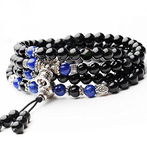 -. Title : AmorWing 108 Perlen Obsidian und 6mm Lapislazuli Mala Wickelarmband Gebetskette für Damen/Herren