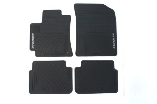 -. Binding : Automotive -. Brand : Toyota -. Color : Black -. Feature : Fits: 2009-2013 Toyota Corolla 4-door Sedan / Helps protect vehicle's factory carpet against mud, embedded sand, stains and soils / Replaces standard carpet floor mats / Ribbed channel design / Easy to clean - can be wiped off -. IsAutographed : 0 -. IsMemorabilia : 0 -. Label : Toyota -. LegalDisclaimer : To avoid interference with pedal operation each mat must be secured with retention hooks (clips).Do not install a floor mat on top of an existing floor mat.This floor mat was designed specifically for use in this model and model year vehicle and SHOULD NOT be used in any other vehicle. -. Manufacturer : Toyota -. ManufacturerPartsWarrantyDescription : Parts -. Model : PT908-02110-20 -. MPN : PT908-02110-20 -. PackageQuantity : 1 -. PartNumber : PT908-02110-20 -. ProductGroup : Automotive Parts and Accessories -. ProductTypeName : AUTO_ACCESSORY -. Publisher : Toyota -. ReleaseDate : 2013-01-23 -. Studio : Toyota -. Title : Genuine Toyota Accessories PT908-02110-20 Front and Rear All-Weather Floor Mat - (Black), Set of 4