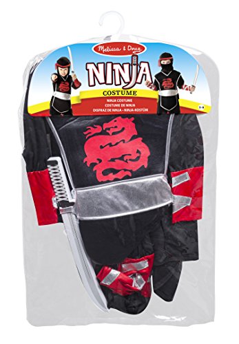 -. Binding : Toy -. Brand : Melissa & Doug -. Color : Black -. Department : unisex-child -. EAN : 0000772085427 -. Feature : Ninja dress-up outfit and accessories / Includes decorated tunic with belt, pants, soft hood, and soft sword / High quality fabrics and construction / Washable / Ideal for pretend play -. IsAdultProduct : 0 -. Label : Melissa and Doug -. LegalDisclaimer : RECOMMENDED FOR 3 TO 6 YEARS OF AGE. -. Manufacturer : Melissa and Doug -. Model : 8542 -. MPN : 8542 -. PackageQuantity : 1 -. PartNumber : 8542 -. ProductGroup : Toy -. ProductTypeName : TOYS_AND_GAMES -. Publisher : Melissa and Doug -. Size : 3-6 -. Studio : Melissa and Doug -. Title : Melissa & Doug Ninja Role Play Costume Set -. UPC : 000772085427 -. Warranty : No Warranty