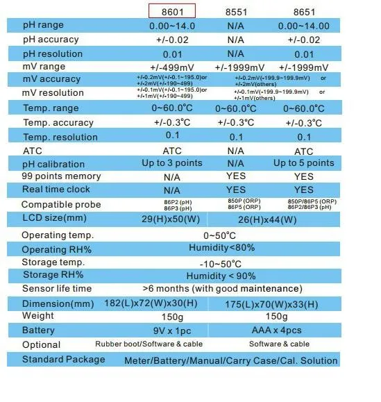 Especificaciones del artículo