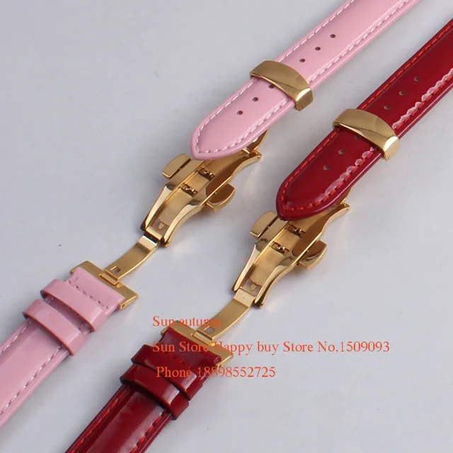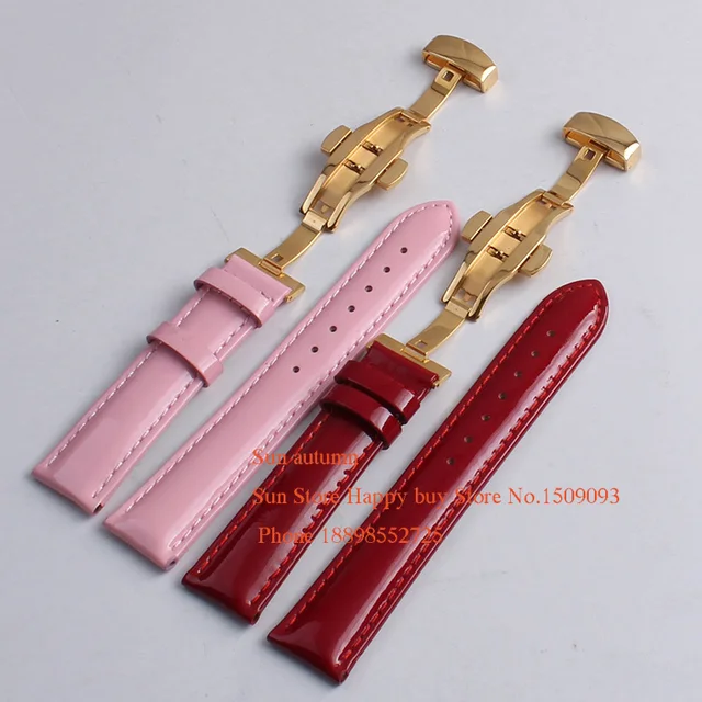 | [해외]도매 시계 스트랩 소 가죽 밴드 밝은 손목 방수 땀 12 14 16 18 20 미리메터 핑크 레드 여성 손목 |