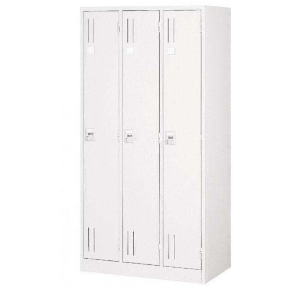 | シンプルで使いやすい3人用ロッカーです。清潔感のあるホワイトはオフィスや店舗などへの設置にピッタリ☆ |