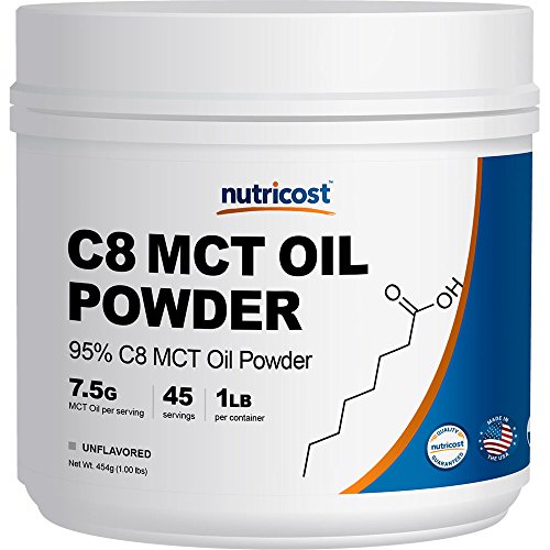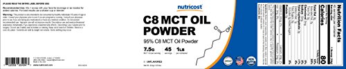 Studio : Nutricost Publisher : Nutricost Binding : Health and Beauty Product Description MCTs (medium chain triglycerides) are surprisingly good for you. MCTs help to boost metabolism, are easy to absorb, help with energy levels and your mood, and also assist with digestion. Our Powdered C8 MCT Oil contains the highest concentration of C8 on the market at 95% C8. The other MCTs come in at C10: 4% and C6: 1%. 0