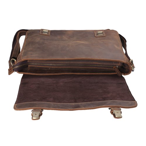 -. Feature : Full grain Crazy-Horse Genuine Cow Leather, 100% Brand New & High Quality, with logo and label of Kattee brand. Kattee is an US registered trademark, unauthorized sale without permission, we will investigated for legal responsibility / Genuine leather and antique brass hardware top handle; Adjustable, padded and detachable leather & braid shoulder strap / Front flat with twin buckles decoration and push button closure is great for quick-access items, inside with zipper closure, maximum security for valuables is guaranteed / Interior with compartment pocket which can store your 16" table pc or A4 files, back wall zipper pocket, wallet holder, cell phone holder and 2 pen holders / Back exterior with zipper pocket can also store your IPAD