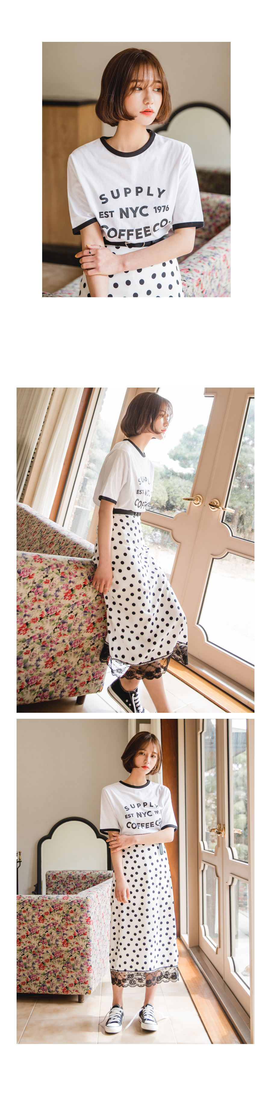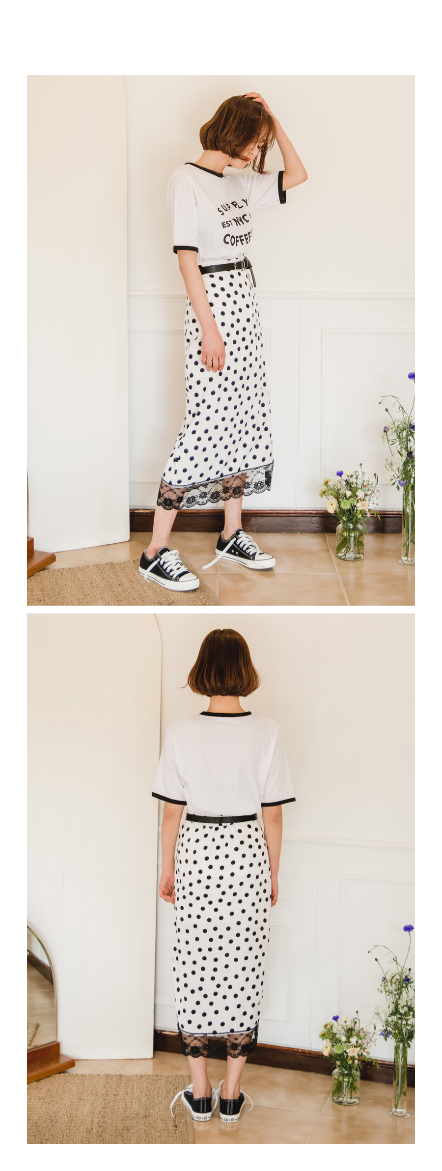 도트패턴으로 스타일리시한 스커트를 소개합니다