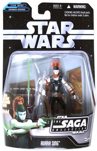 Studio : Hasbro Publisher : Hasbro Binding : Toy Product Description Star Wars - Saga Collection Wal-Mart Exclusives Aurra Sing (Bespin) NIP Action Figure from the 2006 toy series. Weapon: Lightsaber Trained By: The Dark Woman Unusual Accessory: Skull-Implanted Sensor Once a promising if headstrong Padawan, Sing now trades in dark professions: pirate, assassin, and bounty hunter. She specializes in hunting down Jedi under the mistaken belief that they abandoned and betrayed her, and she brandishes the lightsabers of her victims as prized trophies. During the Clone Wars, her quest for vengeance once took her to Bespin, where she met a young Boba Fett. 0