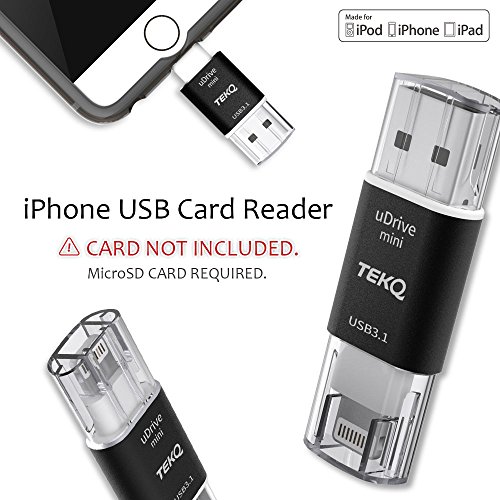 -. Title : [Apple MFI Certified] TEKQ Mini uDrive microSD Card Reader to Lightning, USB 3.0 Flash Drive/memory stick/storage expansion for iPhone, iPad, iPod, Mac and Windows PC(Memory Card Not Included)(Black)
